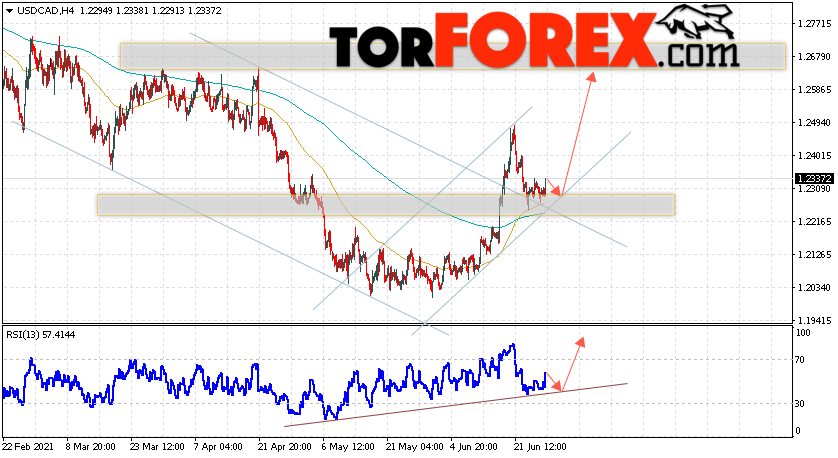 Дополнительным сигналом в пользу роста котировок Канадского Доллара выступит тест линии поддержки на индикаторе относительной силы. Вторым сигналом в пользу подъёма станет отскок от верхней границы нисходящего канала. Отменой варианта роста валютной пары USD/CAD на Форекс станет падение и пробой области 1.2185. Это укажет на пробой области поддержки и продолжение падения котировок в область ниже уровня 1.1795. Ожидать подтверждения роста пары стоит с пробоем области сопротивления и закрытием котировок пары USD/CAD выше уровня 1.2405.