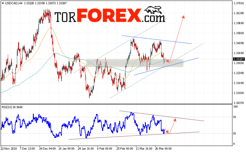 В пользу роста котировок Канадского Доллара выступит тест линии поддержки на индикаторе относительной силы. А также отскок от нижней границы модели «Треугольник». Отменой варианта роста USD/CAD на Форекс станет падение и пробой области 1.3245. Это укажет на пробой нижней границы модели и продолжение падения котировок в область ниже уровня 1.3115. Ожидать подтверждения роста пары стоит с пробоем области сопротивления и закрытием котировок пары USD/CAD выше уровня 1.3445.