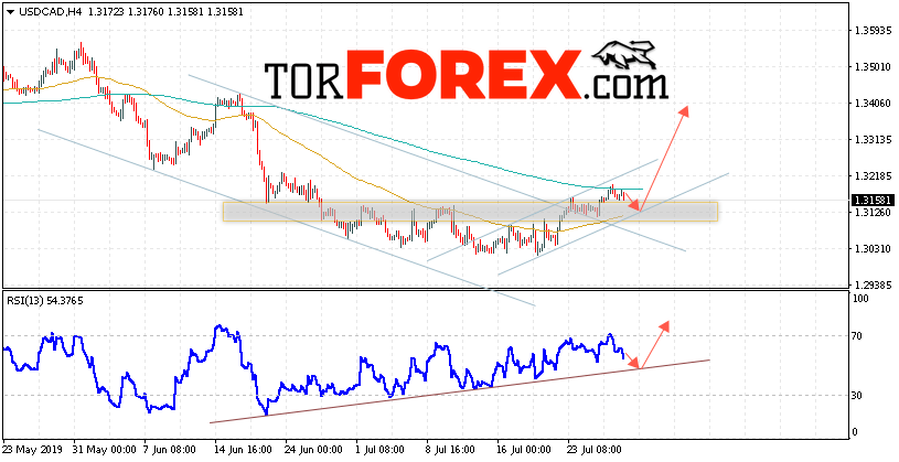 Таким образом, USD/CAD прогноз Канадский Доллар на 30 июля 2019 предполагает попытку теста области поддержки вблизи уровня 1.3125. Далее, продолжение роста в область выше уровня 1.3405. Дополнительным сигналом в пользу подъёма пары на Форекс выступит тест линии поддержки на индикаторе относительной силы. Отменой варианта роста Канадского Доллара станет падение и пробой уровня 1.3075. Это укажет на продолжение снижения с потенциальной целью ниже уровня 1.2935.