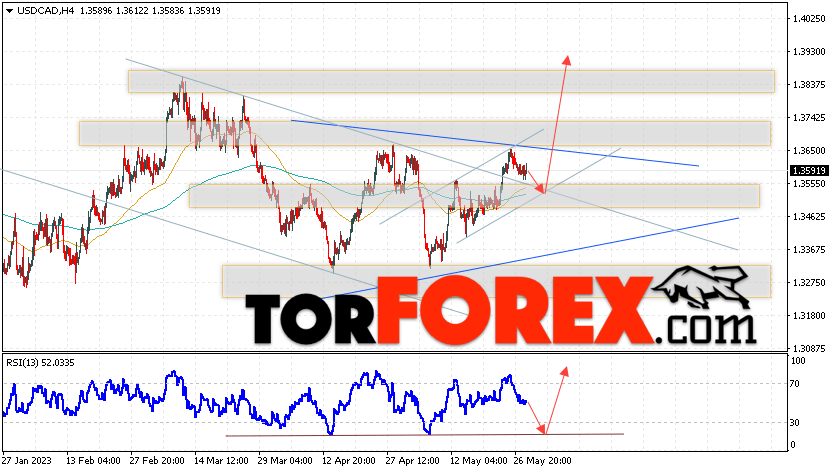 Таким образом, USD/CAD прогноз Канадский Доллар на 31 мая 2023 предполагает попытку теста области поддержки вблизи уровня 1.3535. Далее, продолжение роста в область выше уровня 1.3935. Дополнительным сигналом в пользу подъёма Канадского Доллара на Форекс выступит тест линии тренда на индикаторе относительной силы. Отменой варианта роста котировок USD/CAD станет падение и пробой уровня 1.3465. Это укажет на продолжение снижения стоимости актива с потенциальной целью ниже уровня 1.3325.