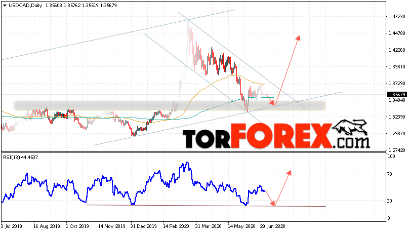 Таким образом, USD/CAD прогноз Канадский Доллар на 6 — 10 июля 2020 предполагает попытку теста области поддержки вблизи уровня 1.3415. Далее, продолжение роста с целью выше уровня 1.4475. Дополнительным сигналом в пользу роста выступит тест линии тренда на индикаторе относительной силы. Отменой варианта развития подъёма станет падение и пробой области 1.3125. Это укажет на пробой нижней границы канала и продолжение падения пары с целью ниже 1.2765.