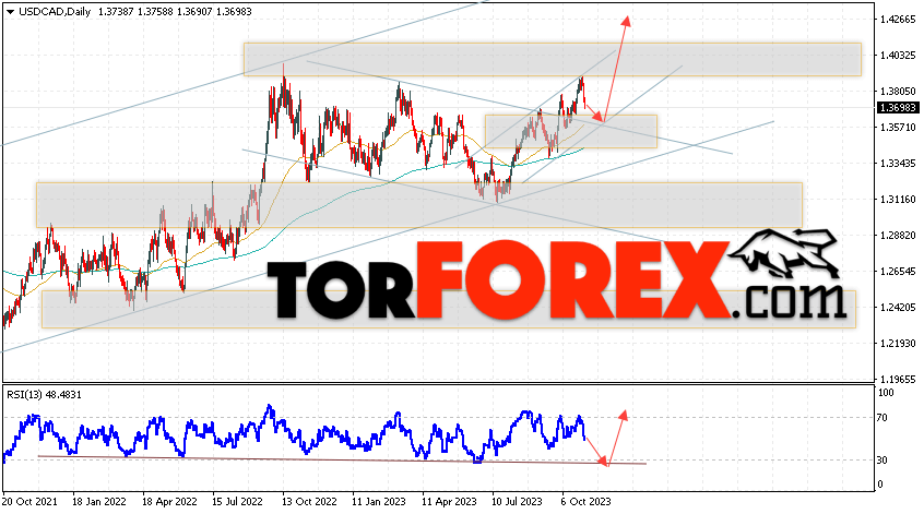 Таким образом, USD/CAD прогноз Канадский Доллар на 6 — 10 ноября 2023 предполагает попытку развития коррекции и теста области поддержки вблизи уровня 1.3585. Далее, продолжение падения с целью ниже уровня 1.4275. Дополнительным сигналом в пользу снижения выступит тест нисходящей линии тренда на индикаторе относительной силы. Отменой варианта развития падения станет сильный рост и пробой области 1.3365. Это укажет на пробой важного уровня сопротивления и продолжение подъёма с целью выше 1.2975.