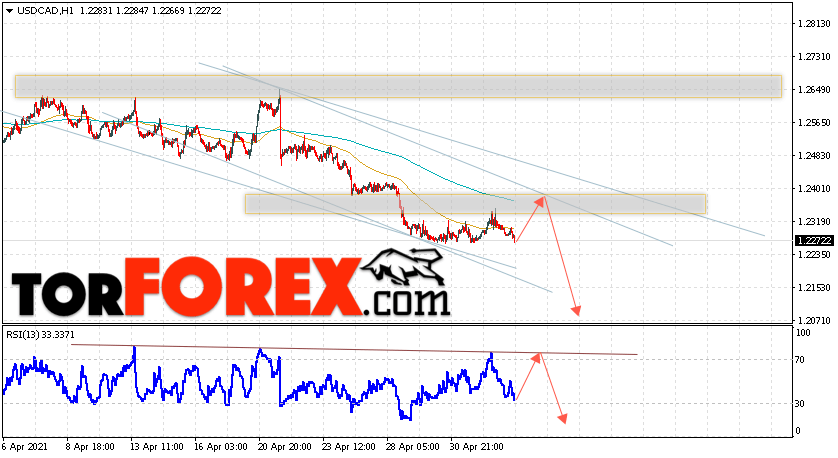 Дополнительным сигналом в пользу падения котировок Канадского Доллара выступит тест линии тренда на индикаторе относительной силы. Вторым сигналом в пользу роста станет отскок от верхней границы нисходящего канала. Отменой варианта падения валютной пары USD/CAD на Форекс станет сильный рост и пробой области 1.2485. Это укажет на пробой области сопротивления и продолжение роста котировок в область выше уровня 1.2685. Ожидать подтверждения падения пары стоит с пробоем области поддержки и закрытием котировок пары USD/CAD ниже уровня 1.2205.
