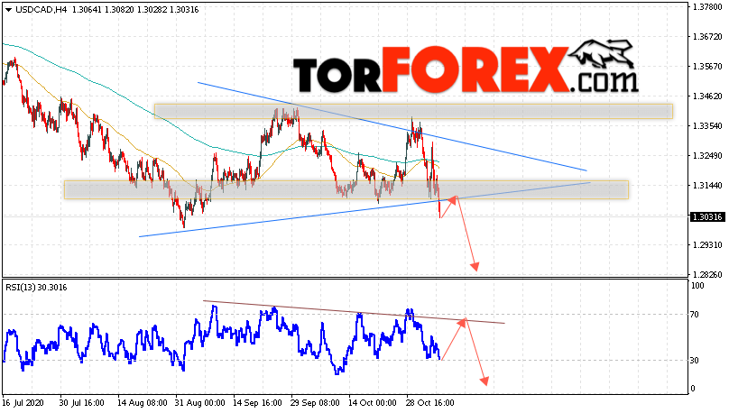 Таким образом, USD/CAD прогноз Канадский Доллар на 6 ноября 2020 предполагает попытку теста области сопротивления вблизи уровня 1.3125. Далее, продолжение падения в область ниже уровня 1.2825. Дополнительным сигналом в пользу снижения Канадского Доллара на Форекс выступит тест линии тренда на индикаторе относительной силы. Отменой варианта падения котировок USD/CAD станет сильный рост и пробой уровня 1.3185. Это укажет на продолжение подъёма стоимости актива с потенциальной целью выше уровня 1.3455.