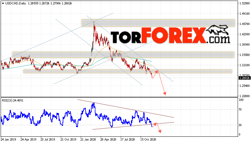 Таким образом, USD/CAD прогноз Канадский Доллар на 7 — 11 декабря 2020 предполагает попытку теста области сопротивления вблизи уровня 1.2905. Далее, продолжение падения с целью ниже уровня 1.2205. Дополнительным сигналом в пользу снижения выступит тест линии тренда на индикаторе относительной силы. Отменой варианта развития падения станет сильный рост и пробой области 1.3225. Это укажет на пробой верхней границы нисходящего канала и продолжение роста пары с целью выше 1.3675.