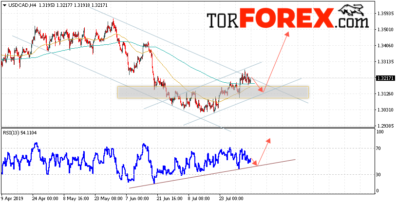 Таким образом, USD/CAD прогноз Канадский Доллар на 7 августа 2019 предполагает попытку теста области поддержки вблизи уровня 1.3125. Далее, продолжение роста в область выше уровня 1.3505. Дополнительным сигналом в пользу подъёма пары на Форекс выступит тест линии поддержки на индикаторе относительной силы. Отменой варианта роста Канадского Доллара станет падение и пробой уровня 1.3075. Это укажет на продолжение снижения с потенциальной целью ниже уровня 1.2965.