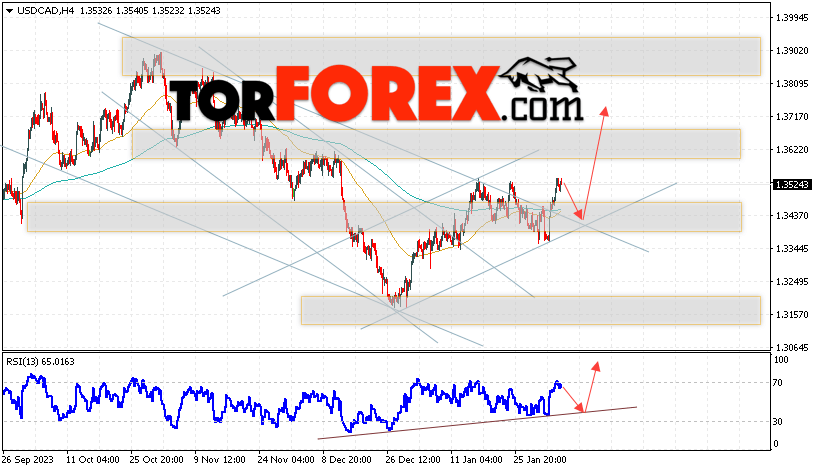 Таким образом, USD/CAD прогноз Канадский Доллар на 7 февраля 2024 предполагает попытку теста области поддержки вблизи уровня 1.3445. Далее, продолжение роста в область выше уровня 1.3725. Дополнительным сигналом в пользу подъёма Канадского Доллара на Форекс выступит тест линии тренда на индикаторе относительной силы. Отменой варианта роста котировок USD/CAD станет падение и пробой уровня 1.3325. Это укажет на продолжение снижения стоимости актива с потенциальной целью ниже уровня 1.3045.