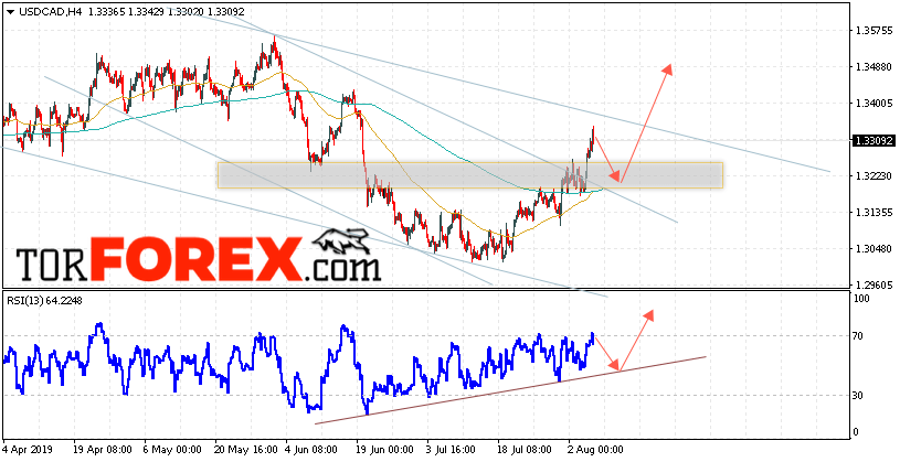 Таким образом, USD/CAD прогноз Канадский Доллар на 8 августа 2019 предполагает попытку теста области поддержки вблизи уровня 1.3235. Далее, продолжение роста в область выше уровня 1.3485. Дополнительным сигналом в пользу подъёма пары на Форекс выступит тест линии поддержки на индикаторе относительной силы. Отменой варианта роста Канадского Доллара станет падение и пробой уровня 1.3115. Это укажет на продолжение снижения с потенциальной целью ниже уровня 1.2945.