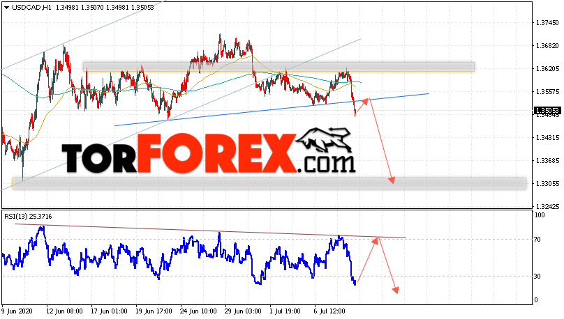 Таким образом, USD/CAD прогноз Канадский Доллар на 9 июля 2020 предполагает попытку теста области сопротивления вблизи уровня 1.3545. Далее, продолжение падения в область ниже уровня 1.3305. Дополнительным сигналом в пользу снижения Канадского Доллара на Форекс выступит тест линии тренда на индикаторе относительной силы. Отменой варианта падения котировок USD/CAD станет сильный рост и пробой уровня 1.3685. Это укажет на продолжение подъема с потенциальной целью выше уровня 1.4055.
