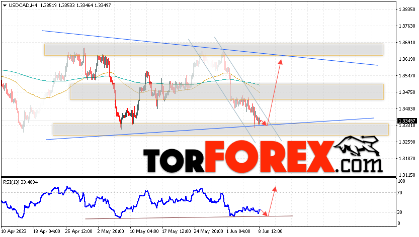 Таким образом, USD/CAD прогноз Канадский Доллар на 9 июня 2023 предполагает попытку теста области поддержки вблизи уровня 1.3325. Далее, продолжение роста в область выше уровня 1.3615. Дополнительным сигналом в пользу подъёма Канадского Доллара на Форекс выступит тест линии тренда на индикаторе относительной силы. Отменой варианта роста котировок USD/CAD станет падение и пробой уровня 1.3265. Это укажет на продолжение снижения стоимости актива с потенциальной целью ниже уровня 1.3145.