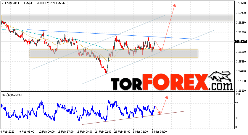 Таким образом, USD/CAD прогноз Канадский Доллар на 9 марта 2021 предполагает попытку теста области поддержки вблизи уровня 1.2625. Далее, продолжение роста в область выше уровня 1.2955. Дополнительным сигналом в пользу подъёма Канадского Доллара на Форекс выступит тест линии тренда на индикаторе относительной силы. Отменой варианта роста котировок USD/CAD станет падение и пробой уровня 1.2535. Это укажет на продолжение снижения стоимости актива с потенциальной целью ниже уровня 1.2235.