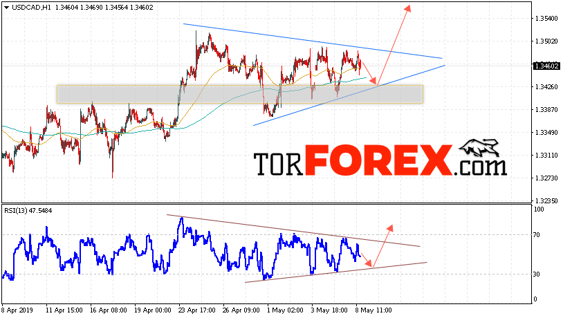 Таким образом, USD/CAD прогноз Канадский Доллар на 9 мая 2019 предполагает попытку теста области поддержки вблизи уровня 1.3425. Далее, продолжение роста в область выше уровня 1.3545. Дополнительным сигналом в пользу подъёма пары на Форекс выступит тест линии тренда на индикаторе относительной силы. Отменой варианта роста Канадского Доллара станет падение и пробой уровня 1.3385. Это укажет на продолжение снижения с потенциальной целью ниже уровня 1.3265.