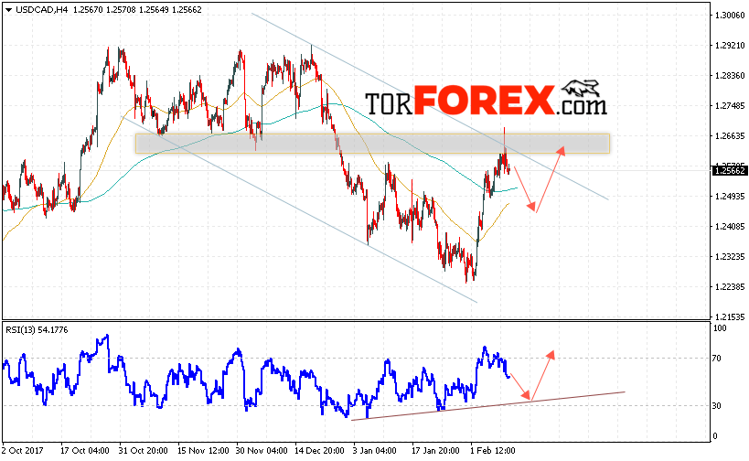 Таким образом, USD/CAD прогноз Канадский Доллар на 13 февраля 2018 предполагает попытку теста уровня поддержки вблизи 1.2460 и продолжения роста в область выше уровня 1.2640, дополнительным сигналом в пользу роста выступит тест линии поддержки на индикаторе относительной силы, отменой варианта роста Канадского Доллара станет пробой уровня 1.2400.