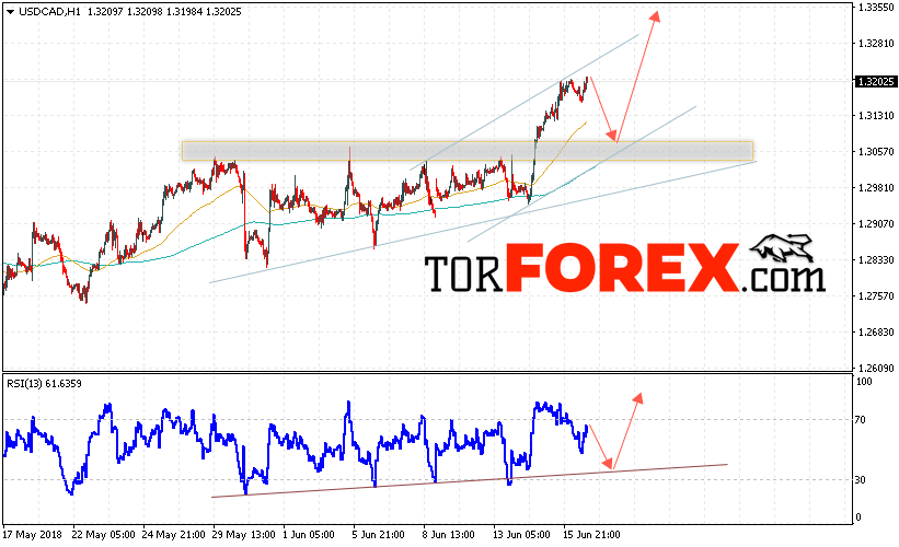 Таким образом, USD/CAD прогноз Канадский Доллар на 19 июня 2018 предполагает попытку теста области поддержки вблизи уровня 1.3080 и продолжения роста в область выше уровня 1.3355, дополнительным сигналом в пользу роста пары выступит тест линии тренда на индикаторе относительной силы, отменой варианта роста Канадского Доллара станет пробой уровня 1.3000.