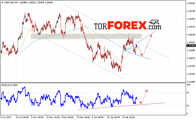 Таким образом, USD/CAD прогноз Канадский Доллар на 20 февраля 2018 предполагает попытку теста уровня поддержки вблизи 1.2440 и продолжения роста в область выше уровня 1.2675, дополнительным сигналом в пользу роста выступит тест линии поддержки на индикаторе относительной силы, отменой варианта роста Канадского Доллара станет пробой уровня 1.2390.