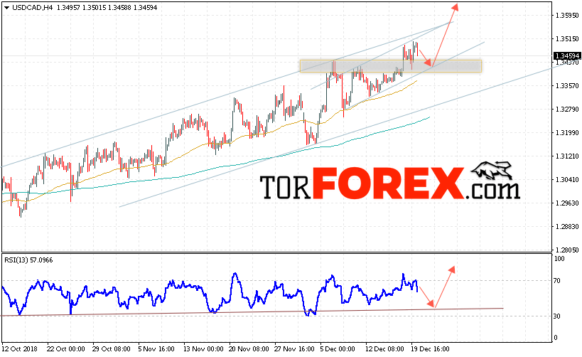 Таким образом, USD/CAD прогноз Канадский Доллар на 21 декабря 2018 предполагает попытку теста области поддержки вблизи уровня 1.3420. Далее, продолжение роста в область выше уровня 1.3645. Дополнительным сигналом в пользу подъёма пары на Форекс выступит тест линии тренда на индикаторе относительной силы. Отменой варианта роста Канадского Доллара станет падение и пробой уровня 1.3355. Это укажет на продолжение снижения.