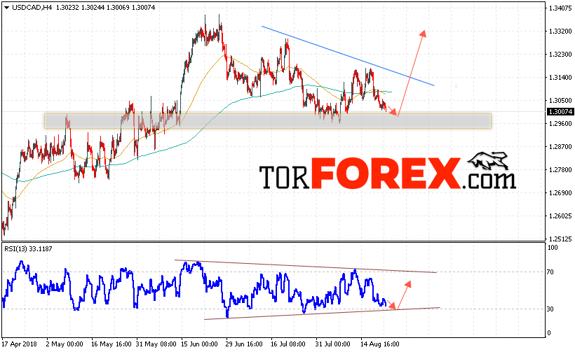 Таким образом, USD/CAD прогноз Канадский Доллар на 23 августа 2018 предполагает попытку теста области поддержки вблизи уровня 1.3000 и продолжения роста в область выше уровня 1.3320, дополнительным сигналом в пользу роста пары на Форекс выступит тест линии поддержки на индикаторе относительной силы, отменой варианта роста Канадского Доллара станет падение и пробой уровня 1.2930.