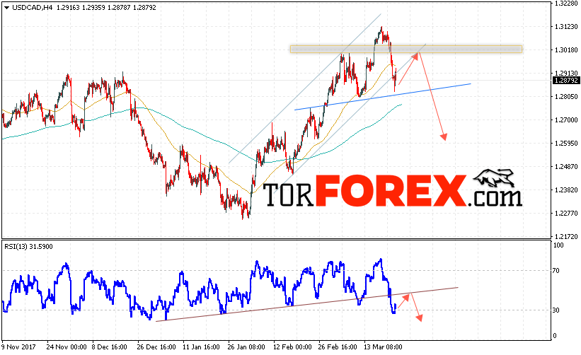 Таким образом, USD/CAD прогноз Канадский Доллар на 23 марта 2018 предполагает попытку теста уровня сопротивления вблизи 1.3000 и продолжения падения в область ниже уровня 1.2600, дополнительным сигналом в пользу падения выступит тест линии тренда на индикаторе относительной силы, отменой варианта падения Канадского Доллара станет пробой уровня 1.3130.