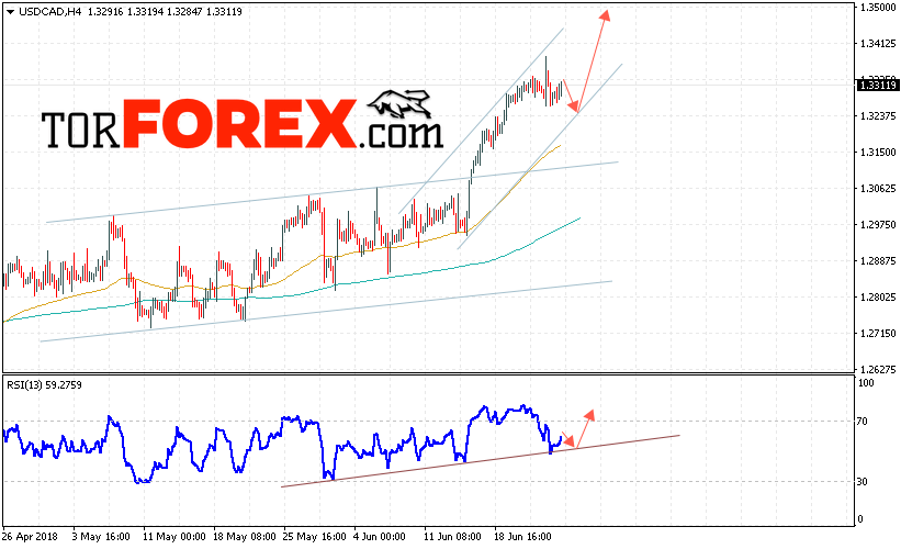 Таким образом, USD/CAD прогноз Канадский Доллар на 26 июня 2018 предполагает попытку теста области поддержки вблизи уровня 1.3245 и продолжения роста в область выше уровня 1.3505, дополнительным сигналом в пользу роста пары выступит тест линии тренда на индикаторе относительной силы, отменой варианта роста Канадского Доллара станет пробой уровня 1.3160.