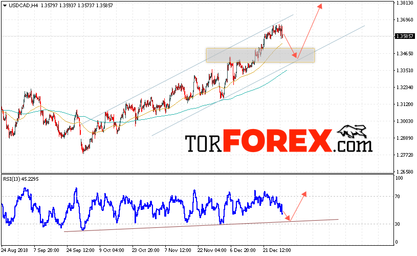 В пользу роста котировок Канадского Доллара выступит тест восходящей линии тренда на индикаторе относительной силы. А также отскок от нижней границы восходящего канала. Отменой варианта роста USD/CAD на Форекс станет падение и пробой области 1.3350. Это укажет на пробой уровня поддержки и продолжение снижения котировок в область ниже уровня 1.3285. Ожидать ускорения роста пары стоит с пробоем области сопротивления и закрытием котировок пары USD/CAD выше уровня 1.3695.
