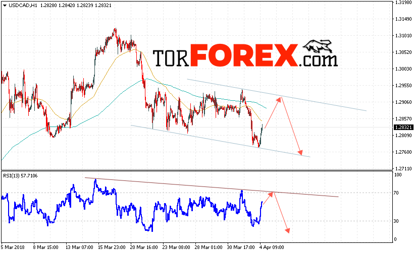 Таким образом, USD/CAD прогноз Канадский Доллар на 5 апреля 2018 предполагает попытку теста верхней границы канала вблизи 1.2910 и продолжения падения в область ниже уровня 1.2750, дополнительным сигналом в пользу падения выступит тест линии тренда на индикаторе относительной силы, отменой варианта падения Канадского Доллара станет пробой уровня 1.2950.