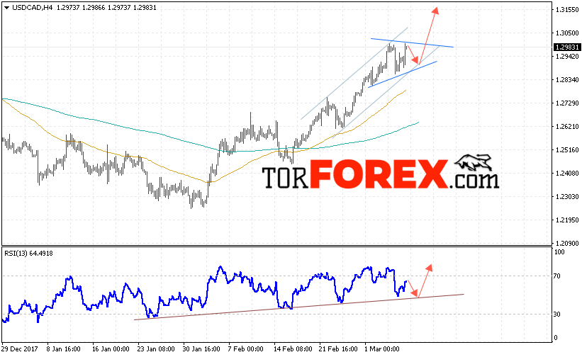 Таким образом, USD/CAD прогноз Канадский Доллар на 8 марта 2018 предполагает попытку теста уровня поддержки вблизи 1.2920 и продолжения роста в область выше уровня 1.3150, дополнительным сигналом в пользу роста выступит тест линии поддержки на индикаторе относительной силы, отменой варианта роста Канадского Доллара станет пробой уровня 1.2820.