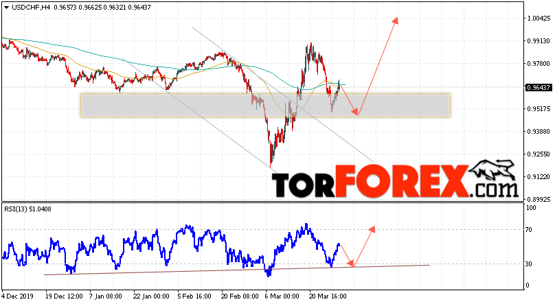 Таким образом, USD/CHF прогноз Доллар Франк на 1 апреля 2020 предполагает попытку теста области поддержки вблизи уровня 0.9495. Далее, продолжение роста валютной пары USD/CHF с целью выше уровня 1.0045. Дополнительным сигналом в пользу роста пары Доллар Франк выступит тест линии тренда на индикаторе относительной силы. Отменой варианта подъёма станет падение и пробой области 0.9325. Это укажет на пробой уровня поддержки и продолжение падения пары с потенциальной целью ниже уровня 0.9135.