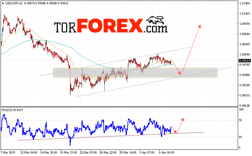 Таким образом, USD/CHF прогноз Доллар Франк на 10 апреля 2019 предполагает попытку теста области поддержки вблизи уровня 0.9955. Далее, продолжение роста пары USD/CHF с целью выше уровня 1.0100. Дополнительным сигналом в пользу роста пары Доллар Франк выступит тест линии поддержки на индикаторе относительной силы. Отменой варианта роста станет падение и пробой области 0.9920. Это укажет на пробой области поддержки и продолжение снижения пары.