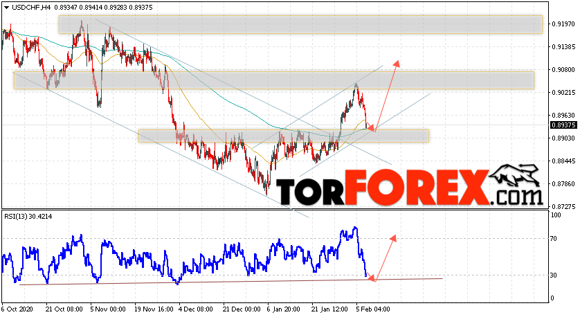 Таким образом, USD/CHF прогноз Доллар Франк на 10 февраля 2021 предполагает попытку теста области поддержки вблизи уровня 0.8890. Далее, продолжение роста валютной пары USD/CHF с целью выше уровня 0.8965. Дополнительным сигналом в пользу подъёма пары Доллар Франк выступит тест линии тренда на индикаторе относительной силы. Отменой варианта роста станет падение и пробой области 0.8875. Это укажет на пробой уровня поддержки и продолжение падения пары с потенциальной целью ниже уровня 0.8595.