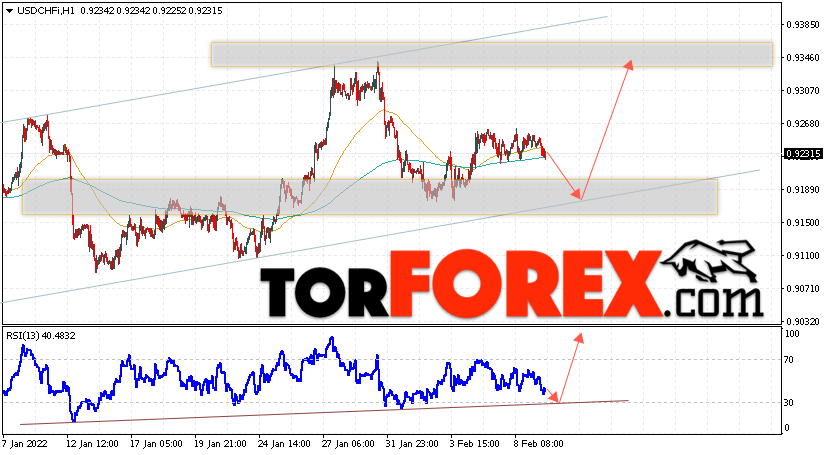 Таким образом, USD/CHF прогноз Доллар Франк на 10 февраля 2022 предполагает попытку теста области поддержки вблизи уровня 0.9185. Далее, продолжение роста валютной пары USD/CHF с целью выше уровня 0.9345. Дополнительным сигналом в пользу роста пары Доллар Франк выступит тест бычьей линии тренда на индикаторе относительной силы. Отменой варианта подъёма станет падение и пробой области 0.9125. Это укажет на пробой уровня поддержки и продолжение снижения пары с потенциальной целью ниже уровня 0.8915.