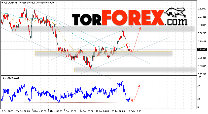 Таким образом, USD/CHF прогноз Доллар Франк на 12 февраля 2021 предполагает попытку теста области поддержки вблизи уровня 0.8875. Далее, продолжение роста валютной пары USD/CHF с целью выше уровня 0.9025. Дополнительным сигналом в пользу подъёма пары Доллар Франк выступит тест линии тренда на индикаторе относительной силы. Отменой варианта роста станет падение и пробой области 0.8825. Это укажет на пробой уровня поддержки и продолжение падения пары с потенциальной целью ниже уровня 0.8655.