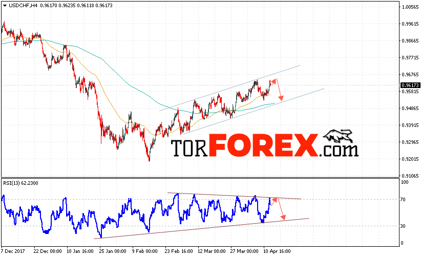 Таким образом, USD/CHF прогноз Доллар Франк на 13 апреля 2018 предполагает попытку теста области сопротивления вблизи уровня 0.9635 и продолжение падения пары USD/CHF с целью ниже уровня 0.9470, дополнительным сигналом в пользу падения пары Доллар Франк выступит тест линии тренда на индикаторе относительной силы, отменой варианта падения станет сильный рост и пробой области 0.9680.