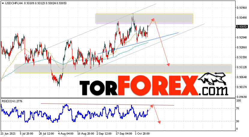 Таким образом, USD/CHF прогноз Доллар Франк на 13 октября 2021 предполагает попытку теста области сопротивления вблизи уровня 0.9345. Далее, продолжение падения валютной пары USD/CHF с целью ниже уровня 0.9115. Дополнительным сигналом в пользу снижения пары Доллар Франк выступит тест линии тренда на индикаторе относительной силы. Отменой варианта падения станет сильный рост и пробой области 0.9405. Это укажет на пробой уровня сопротивления и продолжение подъёма пары с потенциальной целью выше уровня 0.9615.