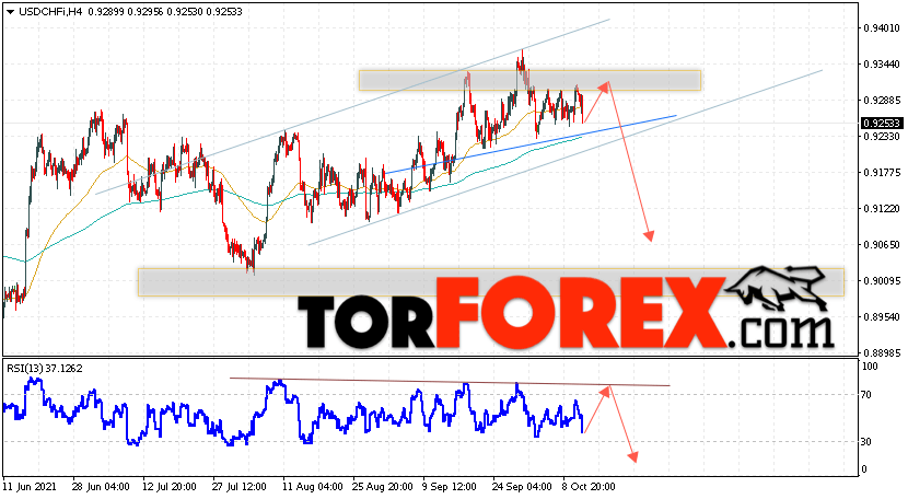 Таким образом, USD/CHF прогноз Доллар Франк на 13 октября 2021 предполагает попытку теста области сопротивления вблизи уровня 0.9315. Далее, продолжение падения валютной пары USD/CHF с целью ниже уровня 0.9065. Дополнительным сигналом в пользу снижения пары Доллар Франк выступит тест линии тренда на индикаторе относительной силы. Отменой варианта падения станет сильный рост и пробой области 0.9405. Это укажет на пробой уровня сопротивления и продолжение подъёма пары с потенциальной целью выше уровня 0.9635.