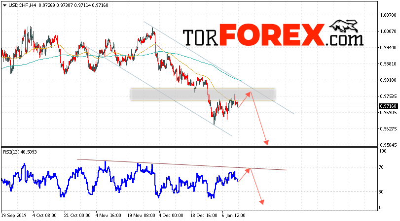 Таким образом, USD/CHF прогноз Доллар Франк на 14 января 2020 предполагает попытку теста области сопротивления вблизи уровня 0.9765. Далее, продолжение падения валютной пары USD/CHF с целью ниже уровня 0.9545. Дополнительным сигналом в пользу снижения пары Доллар Франк выступит тест линии тренда на индикаторе относительной силы. Отменой варианта снижения станет сильный рост и пробой области 0.9835. Это укажет на пробой уровня сопротивления и продолжение роста пары с потенциальной целью выше уровня 1.0135.