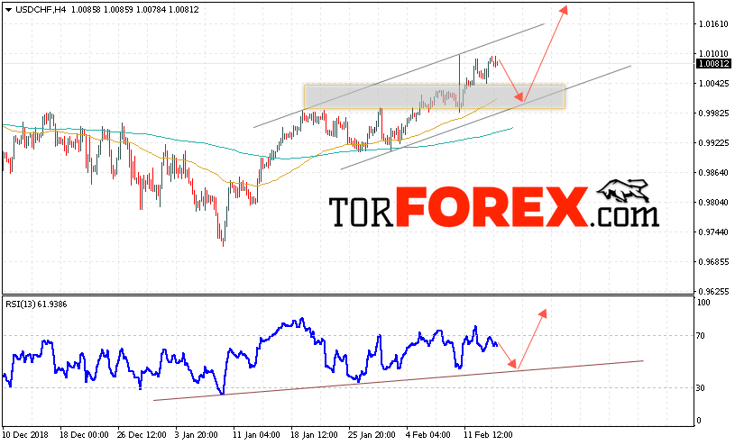 Таким образом, USD/CHF прогноз Доллар Франк на 15 февраля 2019 предполагает попытку теста области поддержки вблизи уровня 1.0015. Далее, продолжение роста пары USD/CHF с целью выше уровня 1.0185. Дополнительным сигналом в пользу роста пары Доллар Франк выступит тест линии поддержки на индикаторе относительной силы. Отменой варианта роста станет падение и пробой области 0.9965. Это укажет на пробой нижней границы нисходящего канала и продолжение снижения пары.