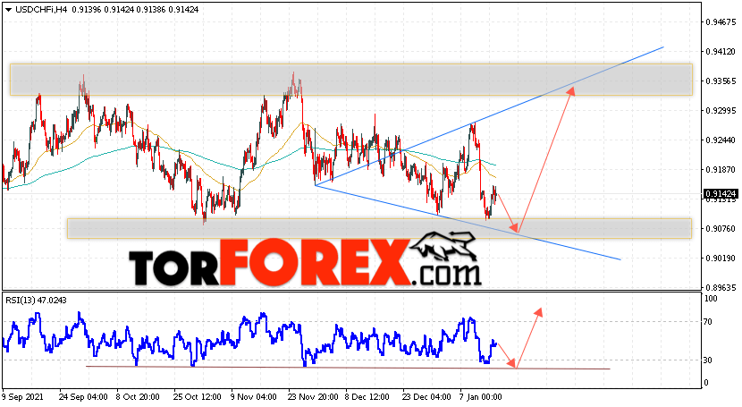 Таким образом, USD/CHF прогноз Доллар Франк на 18 января 2022 предполагает попытку теста области поддержки вблизи уровня 0.9070. Далее, продолжение роста валютной пары USD/CHF с целью выше уровня 0.9335. Дополнительным сигналом в пользу роста пары Доллар Франк выступит тест бычьей линии тренда на индикаторе относительной силы. Отменой варианта подъёма станет падение и пробой области 0.9005. Это укажет на пробой уровня поддержки и продолжение снижения пары с потенциальной целью ниже уровня 0.8805.