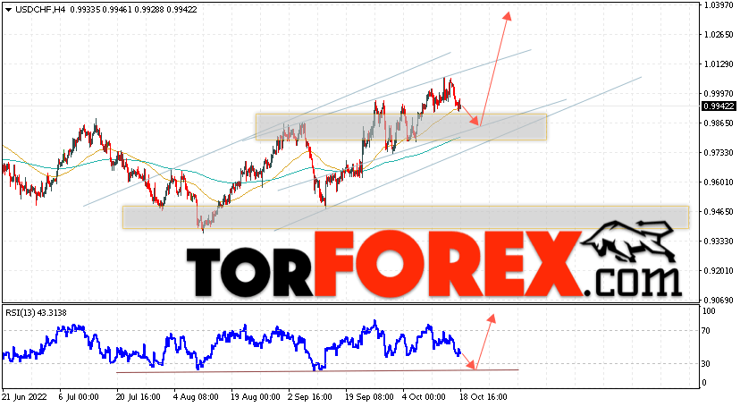 Таким образом, USD/CHF прогноз Доллар Франк на 19 октября 2022 предполагает попытку развития коррекции и теста области поддержки вблизи уровня 0.9865. Далее, продолжение роста валютной пары USD/CHF с целью выше уровня 1.0305. Дополнительным сигналом в пользу подъёма пары Доллар Франк выступит отскок от линии тренда на индикаторе относительной силы. Отменой варианта роста станет падение и пробой области 0.9705. Это укажет на пробой уровня поддержки и продолжение падения пары с потенциальной целью ниже уровня 0.9525.