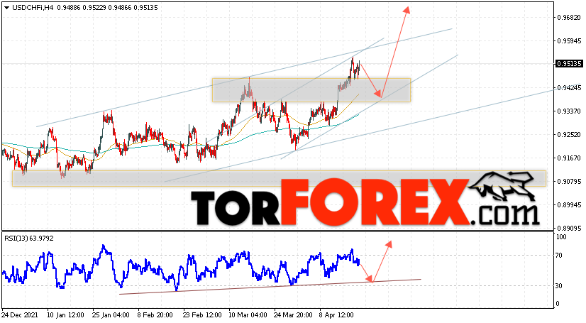 Таким образом, USD/CHF прогноз Доллар Франк на 22 апреля 2022 предполагает попытку теста области поддержки вблизи уровня 0.9405. Далее, продолжение роста валютной пары USD/CHF с целью выше уровня 0.9715. Дополнительным сигналом в пользу роста пары Доллар Франк выступит тест бычьей линии тренда на индикаторе относительной силы. Отменой варианта подъёма станет падение и пробой области 0.9305. Это укажет на пробой уровня поддержки и продолжение снижения пары с потенциальной целью ниже уровня 0.8975.