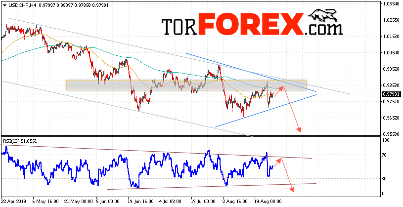 Таким образом, USD/CHF прогноз Доллар Франк на 28 августа 2019 предполагает попытку теста области сопротивления вблизи уровня 0.9845. Далее, продолжение падения валютной пары USD/CHF с целью ниже уровня 0.9555. Дополнительным сигналом в пользу снижения пары Доллар Франк выступит тест линии тренда на индикаторе относительной силы. Отменой варианта падения станет сильный рост и пробой области 0.9965. Это укажет на пробой уровня сопротивления и продолжение роста пары с потенциальной целью выше уровня 1.0155.