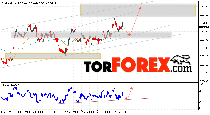 Таким образом, USD/CHF прогноз Доллар Франк на 28 сентября 2021 предполагает попытку теста области поддержки вблизи уровня 0.9165. Далее, продолжение роста валютной пары USD/CHF с целью выше уровня 0.9405. Дополнительным сигналом в пользу подъёма пары Доллар Франк выступит тест линии тренда на индикаторе относительной силы. Отменой варианта роста станет падение и пробой области 0.9075. Это укажет на пробой уровня поддержки и продолжение падения пары с потенциальной целью ниже уровня 0.8905.