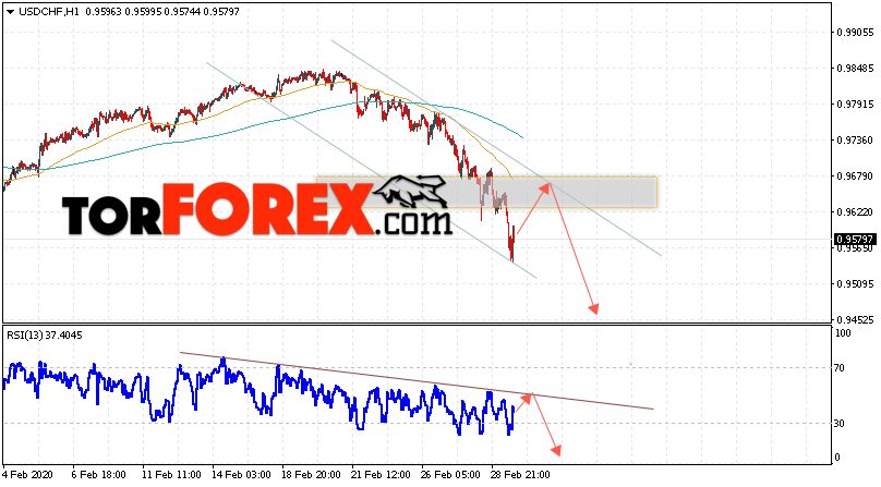 Таким образом, USD/CHF прогноз Доллар Франк на 3 марта 2020 предполагает попытку теста области сопротивления вблизи уровня 0.9655. Далее, продолжение падения валютной пары USD/CHF с целью ниже уровня 0.9450. Дополнительным сигналом в пользу снижения пары Доллар Франк выступит тест линии тренда на индикаторе относительной силы. Отменой варианта падения станет сильный рост и пробой области 0.9725. Это укажет на пробой уровня сопротивления и продолжение подъёма пары с потенциальной целью выше уровня 0.9845.