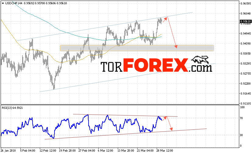 Таким образом, USD/CHF прогноз Доллар Франк на 30 марта 2018 предполагает попытку теста верхней границы восходящего канала вблизи уровня 0.9570 и продолжение падения пары USD/CHF с целью ниже уровня 0.9440, дополнительным сигналом в пользу падения пары Доллар Франк выступит тест линии тренда на индикаторе относительной силы, отменой варианта снижения станет сильный рост и пробой области 0.9590.