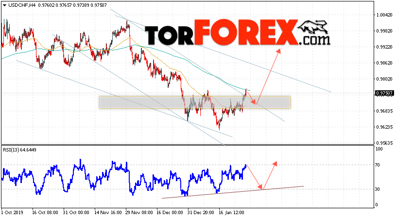 Таким образом, USD/CHF прогноз Доллар Франк на 30 января 2020 предполагает попытку теста области поддержки вблизи уровня 0.9705. Далее, продолжение роста валютной пары USD/CHF с целью выше уровня 0.9925. Дополнительным сигналом в пользу подъёма пары Доллар Франк выступит тест линии тренда на индикаторе относительной силы. Отменой варианта подъёма станет падение и пробой области 0.9615. Это укажет на пробой уровня поддержки и продолжение падения пары с потенциальной целью ниже уровня 0.9415.