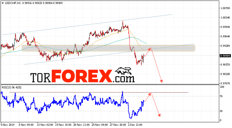 Таким образом, USD/CHF прогноз Доллар Франк на 5 декабря 2019 предполагает попытку теста области сопротивления вблизи уровня 0.9925. Далее, продолжение падения валютной пары USD/CHF с целью ниже уровня 0.9785. Дополнительным сигналом в пользу снижения пары Доллар Франк выступит тест линии тренда на индикаторе относительной силы. Отменой варианта падения станет сильный рост и пробой области 0.9965. Это укажет на пробой уровня сопротивления и продолжение роста пары с потенциальной целью выше уровня 1.0145.