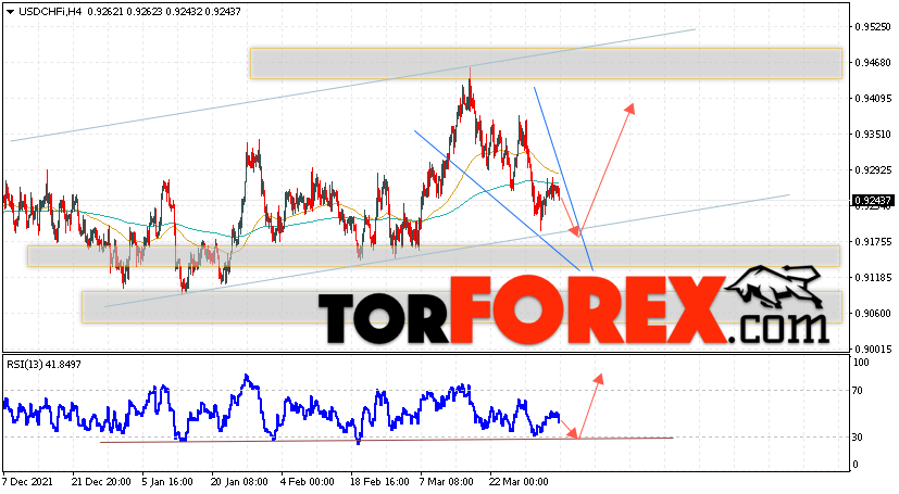 Таким образом, USD/CHF прогноз Доллар Франк на 6 апреля 2022 предполагает попытку теста области поддержки вблизи уровня 0.9205. Далее, продолжение роста валютной пары USD/CHF с целью выше уровня 0.9405. Дополнительным сигналом в пользу роста пары Доллар Франк выступит тест бычьей линии тренда на индикаторе относительной силы. Отменой варианта подъёма станет падение и пробой области 0.9135. Это укажет на пробой уровня поддержки и продолжение снижения пары с потенциальной целью ниже уровня 0.8815.