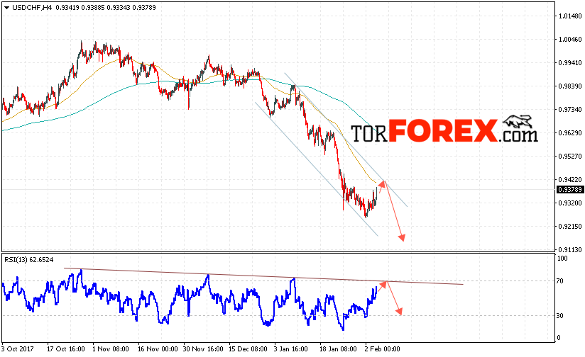 Таким образом, USD/CHF прогноз Доллар Франк на 7 февраля 2018 предполагает попытку теста уровня 0.9410 и продолжение падения пары USD/CHF с целью ниже уровня 0.9200, дополнительным сигналом в пользу падения пары Доллар Франк выступит тест линии тренда на индикаторе относительной силы.