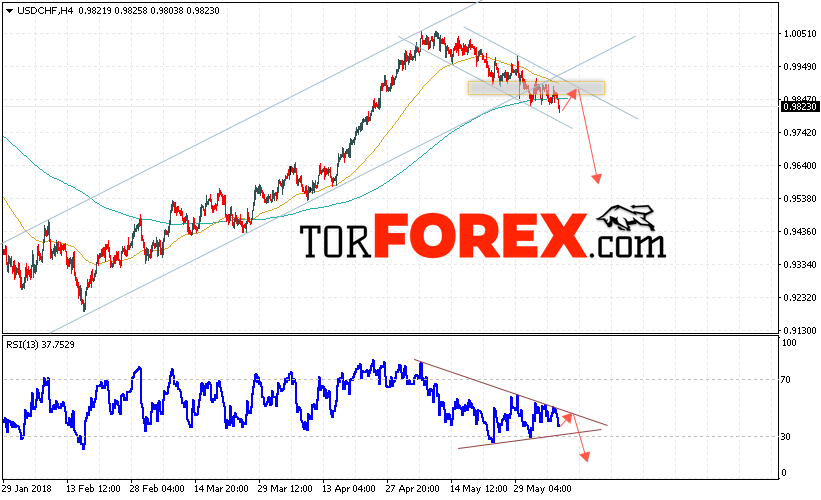 Таким образом, USD/CHF прогноз Доллар Франк на 8 июня 2018 предполагает попытку теста области сопротивления вблизи уровня 0.9850 и продолжение падения пары USD/CHF с целью ниже уровня 0.9620, дополнительным сигналом в пользу падения пары Доллар Франк выступит тест линии тренда на индикаторе относительной силы, отменой варианта падения станет сильный рост и пробой области 0.9940.