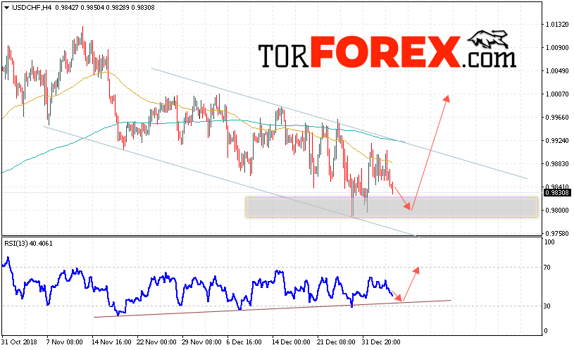 Таким образом, USD/CHF прогноз Доллар Франк на 8 января 2019 предполагает попытку теста области поддержки вблизи уровня 0.9810. Далее, продолжение роста пары USD/CHF с целью выше уровня 1.0010. Дополнительным сигналом в пользу роста пары Доллар Франк выступит тест линии тренда на индикаторе относительной силы. Отменой варианта роста станет падение и пробой области 0.9755. Это укажет на пробой области поддержки и продолжение падения пары.