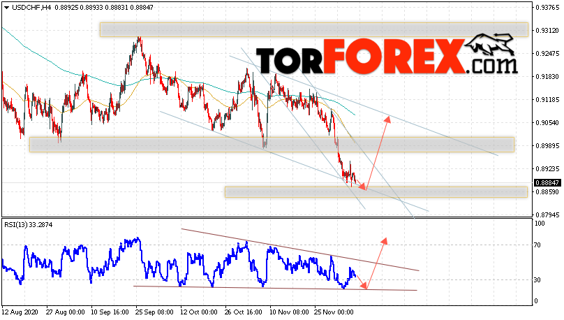 Таким образом, USD/CHF прогноз Доллар Франк на 9 декабря 2020 предполагает попытку теста области поддержки вблизи уровня 0.8860. Далее, продолжение роста валютной пары USD/CHF с целью выше уровня 0.9065. Дополнительным сигналом в пользу подъёма пары Доллар Франк выступит тест линии тренда на индикаторе относительной силы. Отменой варианта роста станет падение и пробой области 0.8825. Это укажет на пробой уровня поддержки и продолжение падения пары с потенциальной целью ниже уровня 0.8505.